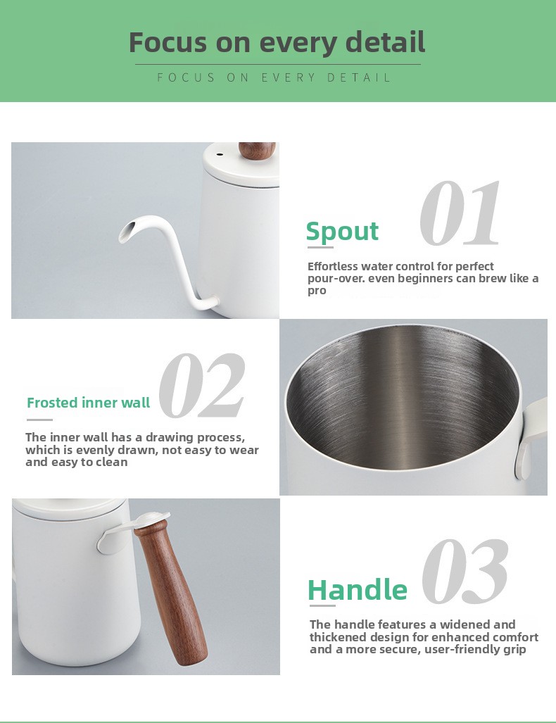 Precision Spout: Fine spout enables controlled pouring for optimal coffee extraction.
